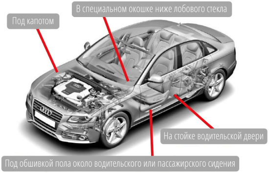 Среди распространенных участков авто, где может быть нанесен уникальный код: